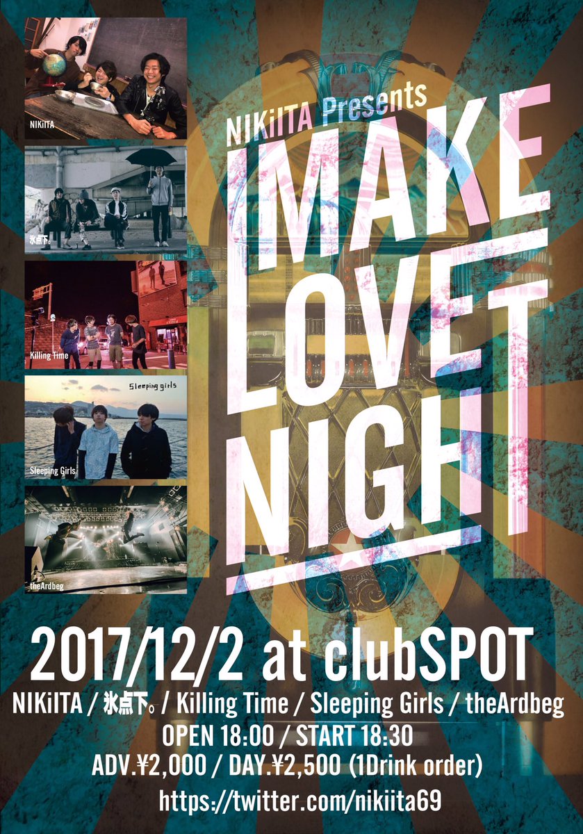 NIKIiTA presents 『MAKE LOVE NIGHT』 ■出演 NIKiITA / 氷点下。(福岡) / Killing Time(熊本) / Sleeping Girls / theArdbeg