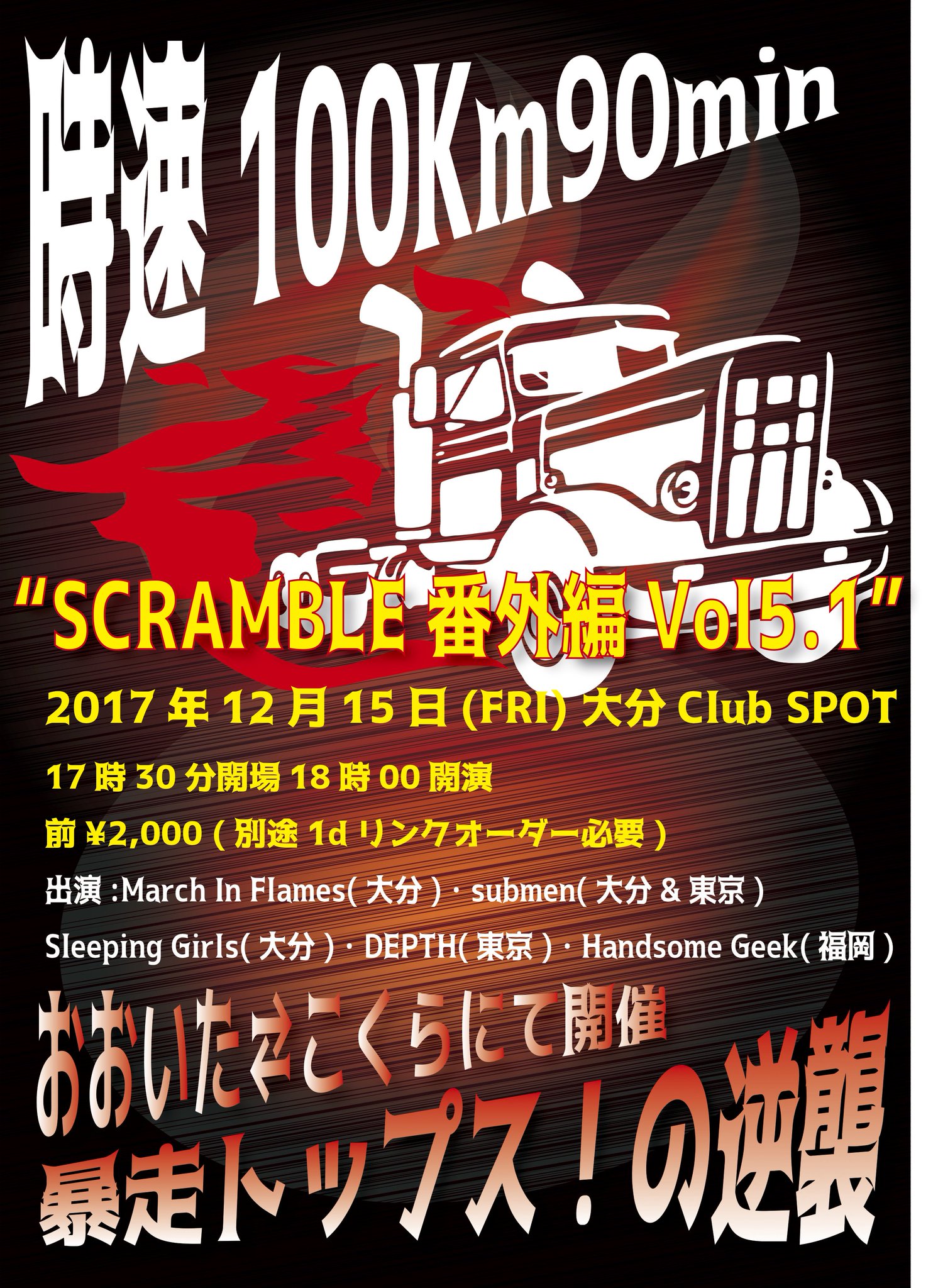 小倉FUSE合同企画!時速100km90分の旅「SCRAMBLE vol.5.1」March In Flames・submen・DEPTH・Sleeping Girls・Handsome Geek