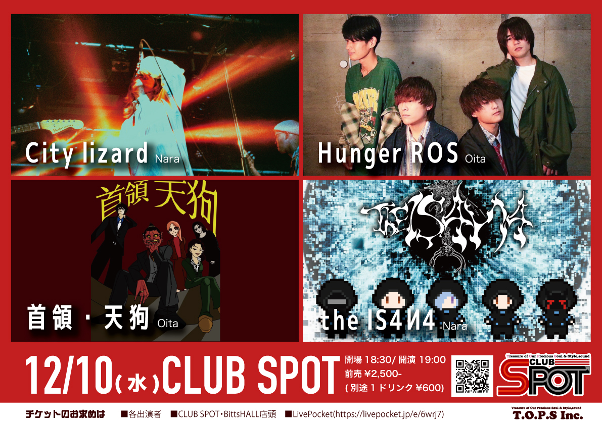 ■ライブチケット前売り¥2,500(+1D)◎ライブチケット販売◎■各出演者■BittsHALL,CLUB SPOT店頭■LivePocket (https://livepocket.jp/e/6wrj7)◎お問合せ◎T.O.P.S incTel 097-533-0467(14~23時) Mail info@oita-tops.com